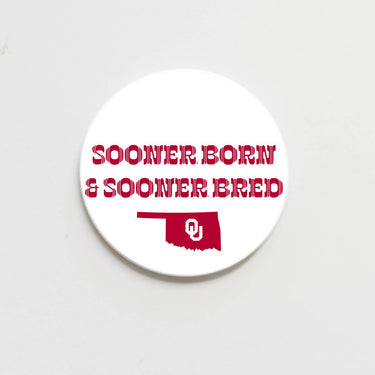 get ready to cheer on the Sooners with our officially licensed game day buttons! this 3" button letting everyone know you were sooner born! This button will look great on gameday. They are also a great way for a high school senior to let the world know they have locked in on their school of choice. Boomer Sooner!