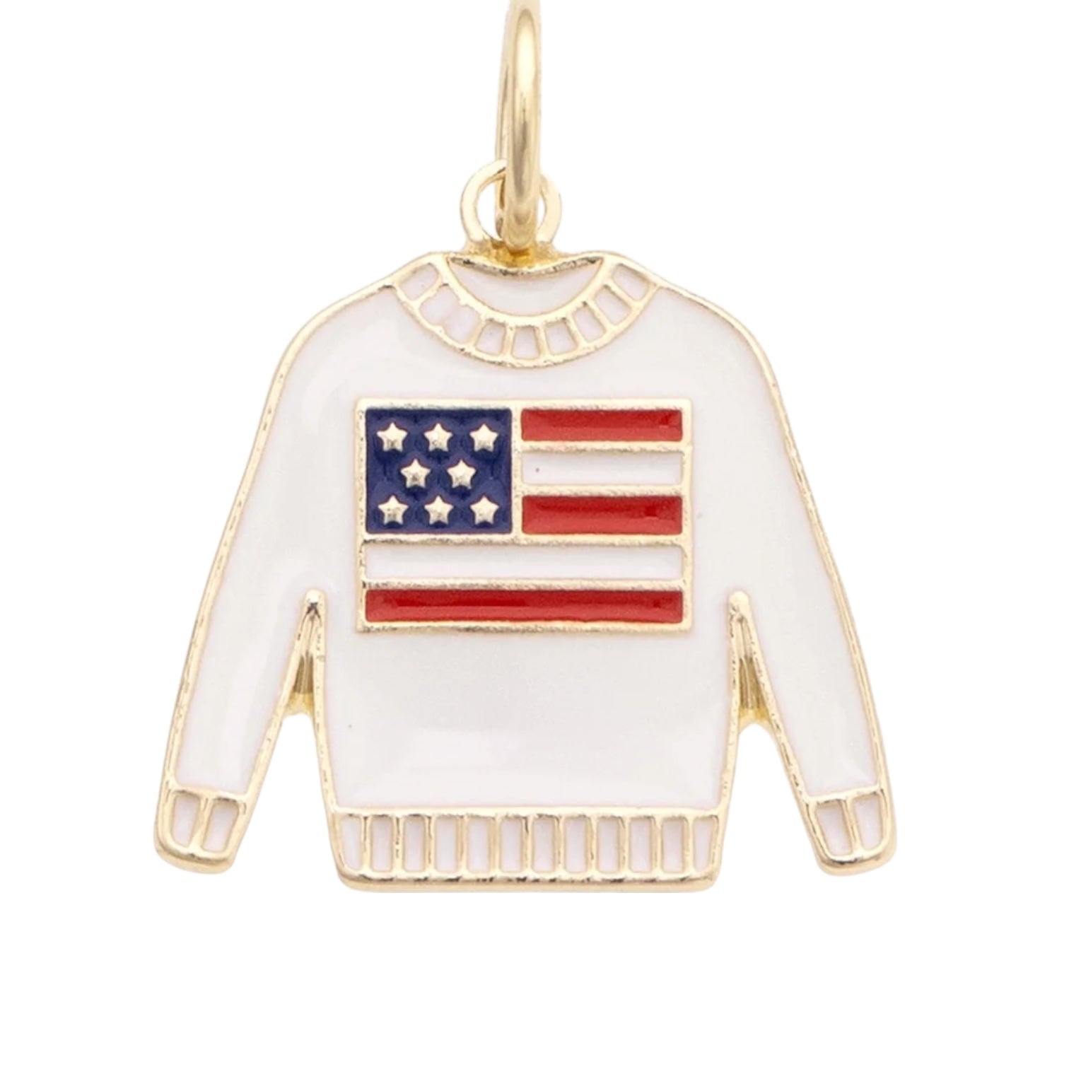 Celebrate in style with this patriotic American flag sweater charm in white enamel. A charming nod to all-American pride.