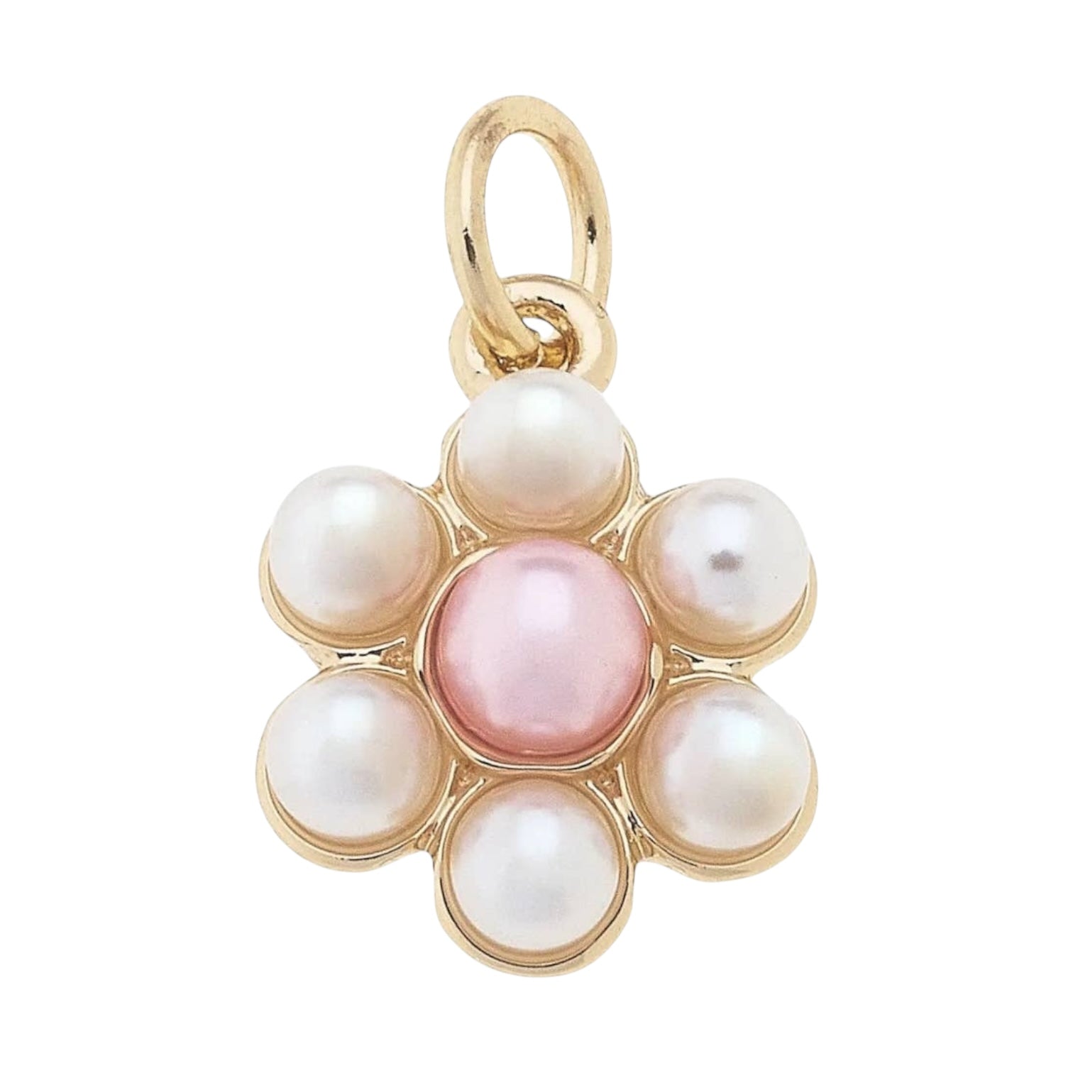 The Pearl Flower Charm features a beautiful flower design adorned with a single pearl at the center. This charm exudes elegance and adds a sophisticated touch to any jewelry piece.