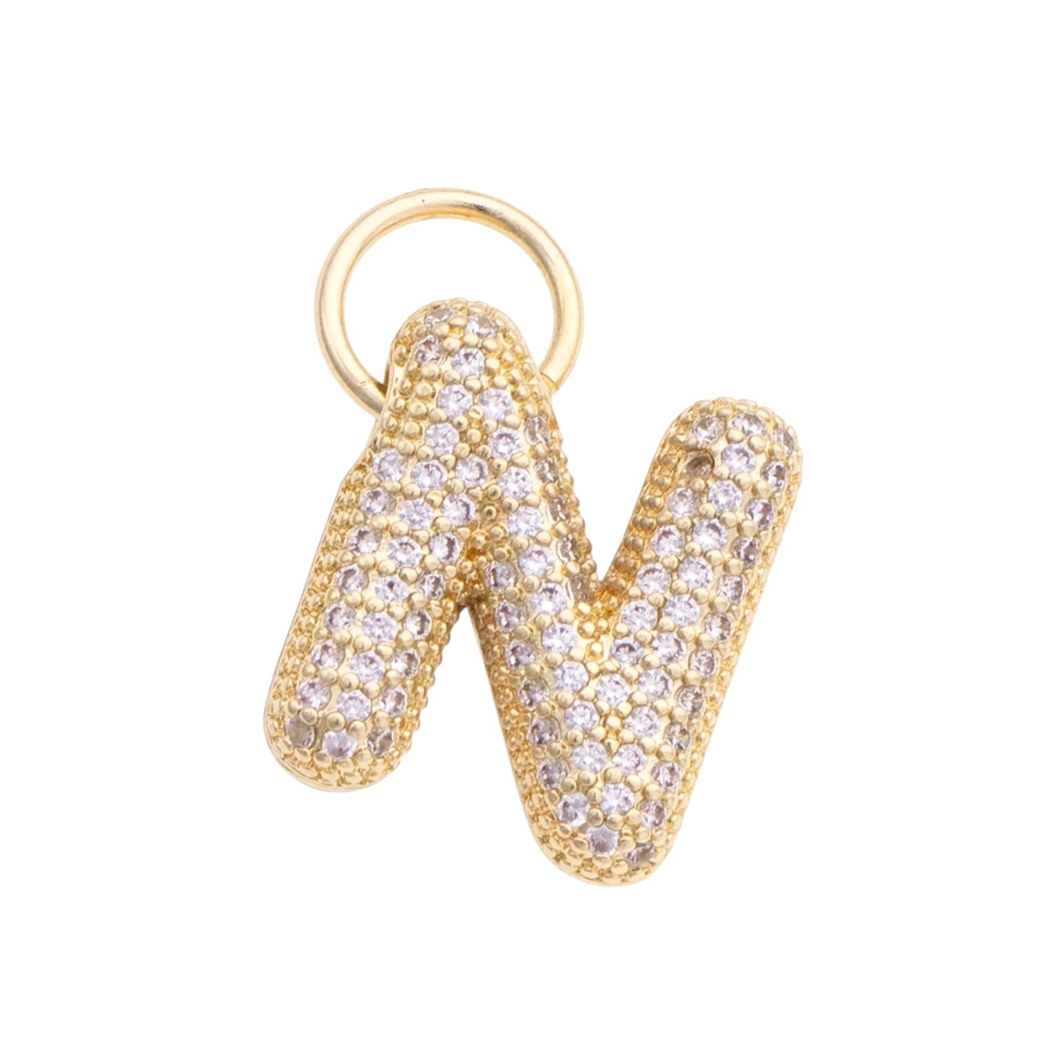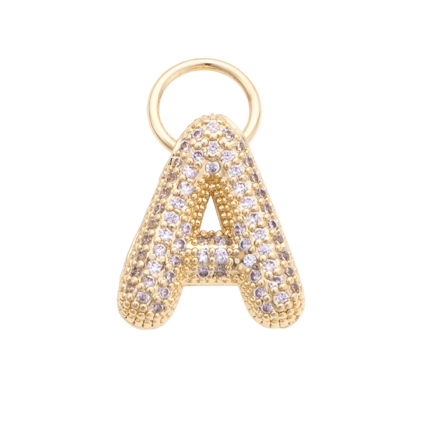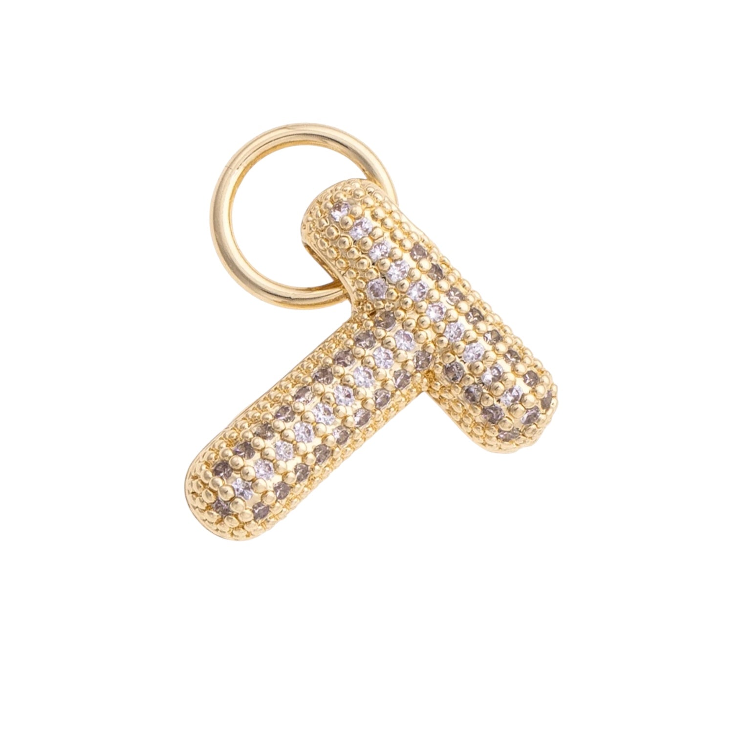 Add a personal touch with this sparkling pave initial charm in shiny gold. Perfect for customizing your favorite necklace or bracelet with a hint of glamour.