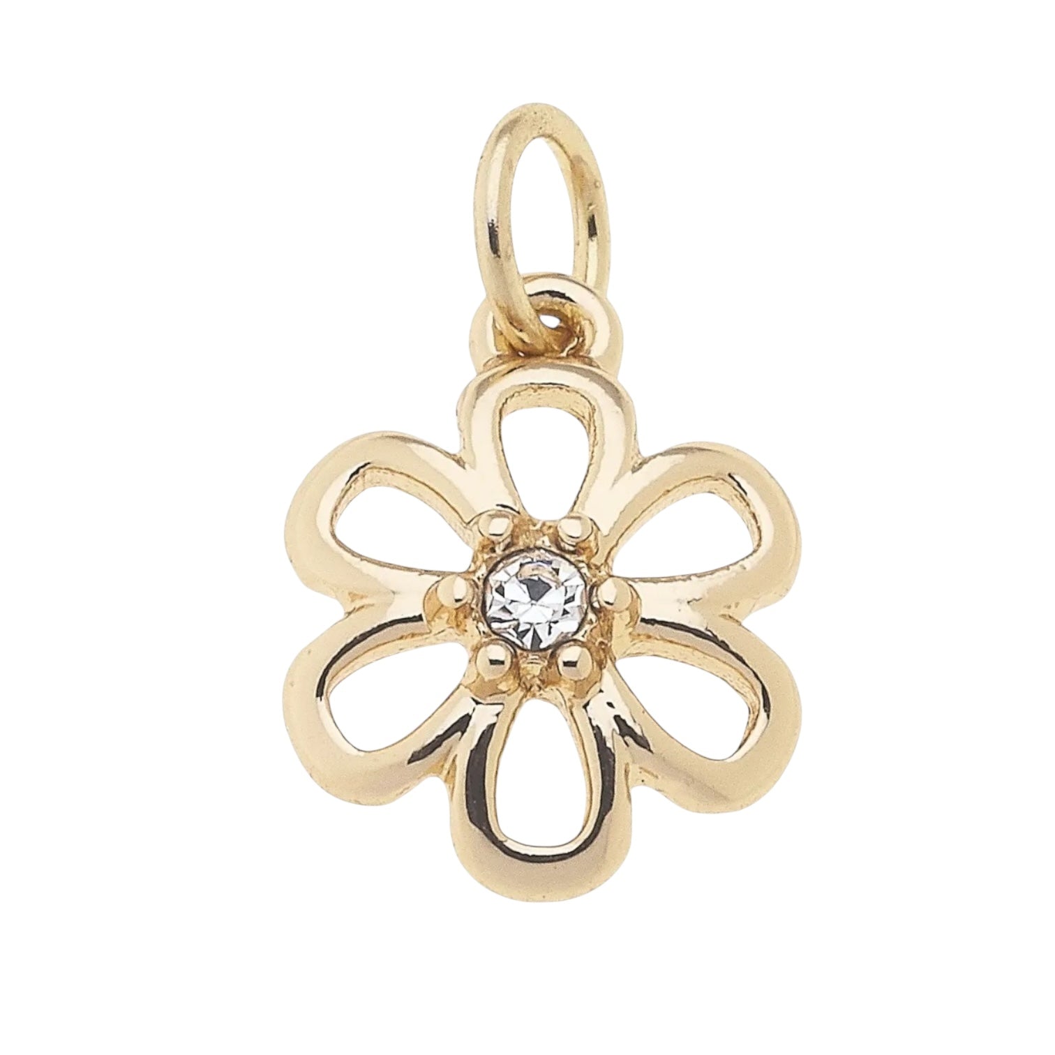 The Mini Open Flower Charm in Shiny Gold features a small, open flower design with polished gold petals. This charm adds a touch of nature and elegance to any jewelry piece.