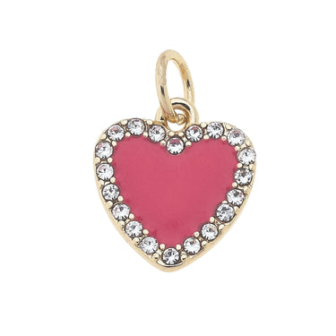 The Pave Enamel Heart Charm in Fuchsia features a heart covered in fuchsia enamel and sparkling pave stones. This charming design adds both color and shimmer to any jewelry collection.