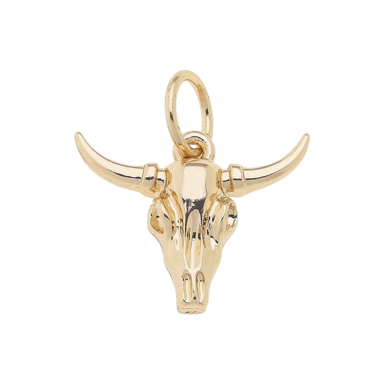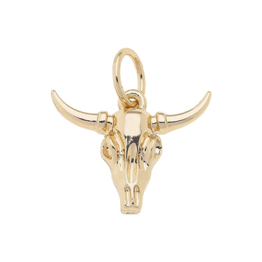 The Steer Skull Charm in Shiny Gold features a detailed steer skull design in shiny gold. This charm captures a rugged, southwestern vibe, perfect for adding an edgy, rustic touch to your jewelry.