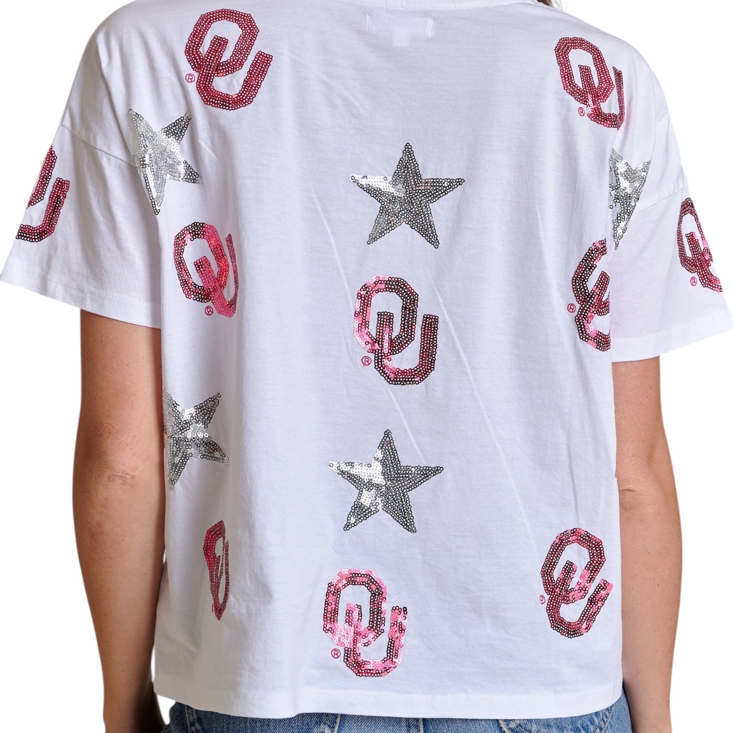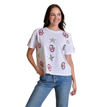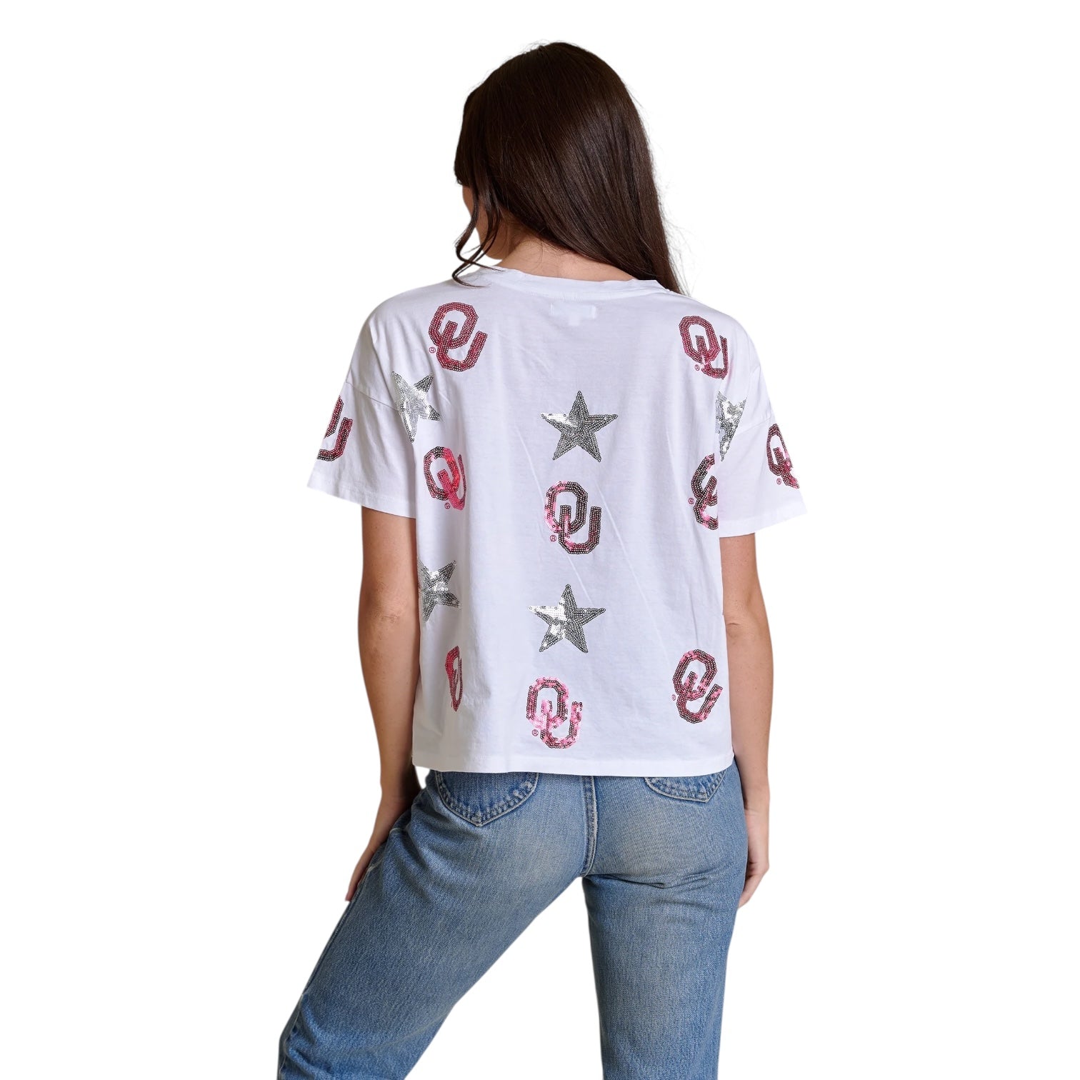 A sparkly standout with playful team spirit. This short sleeve tee delivers the “it” factor with its all-over sequin star and logo toss print. Designed with a relaxed, easy fit and soft cotton jersey, it’s as wearable as it is wow-worthy. Style it with denim or bermuda shorts and statement boots for a look that’s game day glam from every angle.