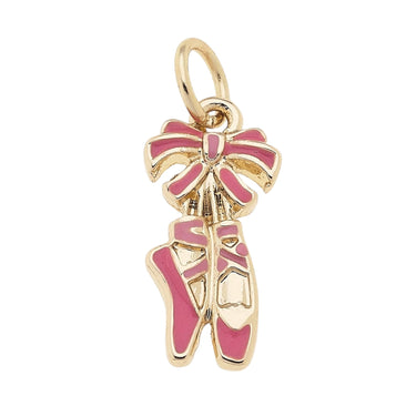 The Ballet Enamel Pointe Shoes Charm in Light Pink features delicate pointe shoes in soft pink enamel. This charm is perfect for ballet dancers or fans of graceful, artistic movements.