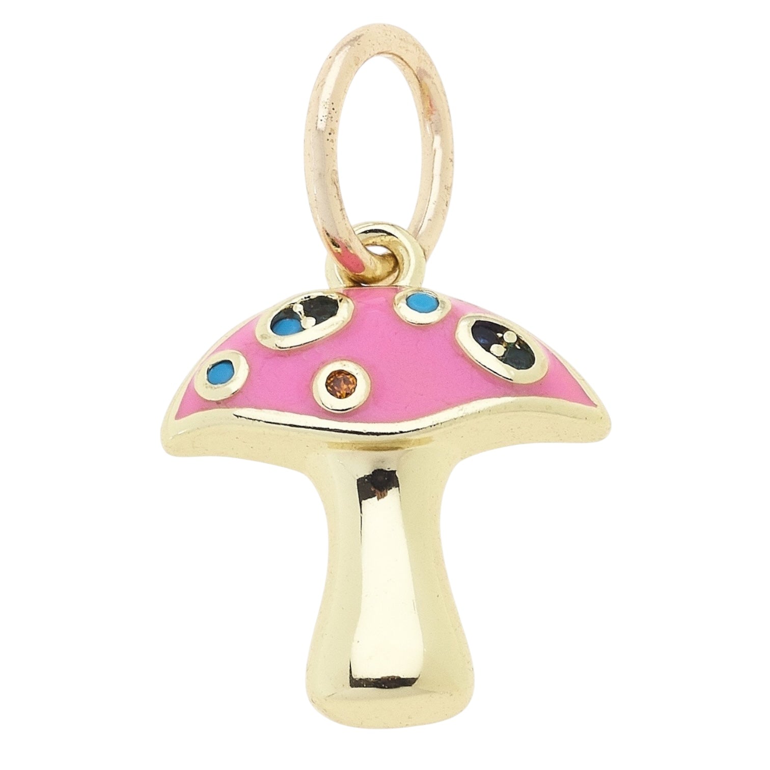 The Bejeweled Mushroom Charm in Pink features a whimsical mushroom design adorned with sparkling gemstones. This playful charm adds a magical, fairytale-inspired touch to your jewelry.