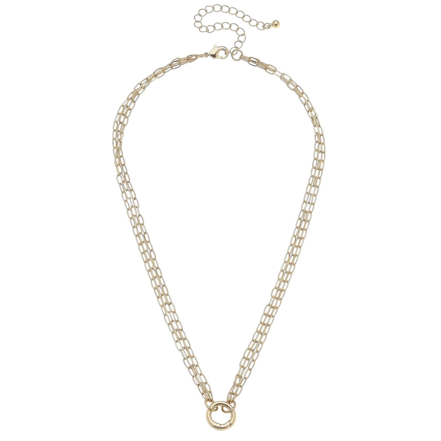 Elegant and delicate, the Celia 3-Row Dainty Charm Necklace Base offers a layered look that is both stylish and subtle. Ideal for those who love to create a multi-charm statement, this shiny gold base is perfect for your charm collection. Easily add & remove charms to our necklace bases with our charm holders with hinge closures. Mix & Match charms to show off your unique style.