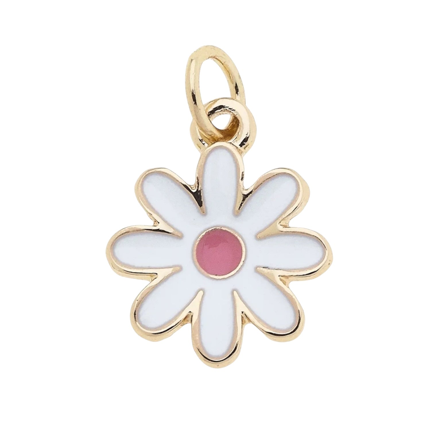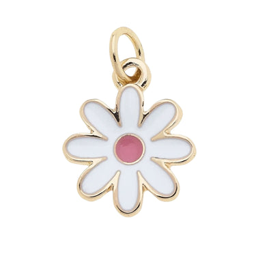 The Enamel Flower Charm in White features a delicate white enamel flower design. This charm is a beautiful addition to any collection, offering a simple yet elegant touch of nature's beauty.