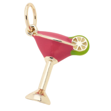 The Enamel Cosmopolitan Charm in Pink features a cocktail glass filled with a cosmopolitan drink in vibrant pink enamel. This charm is perfect for adding a touch of elegance and fun to your jewelry collection.