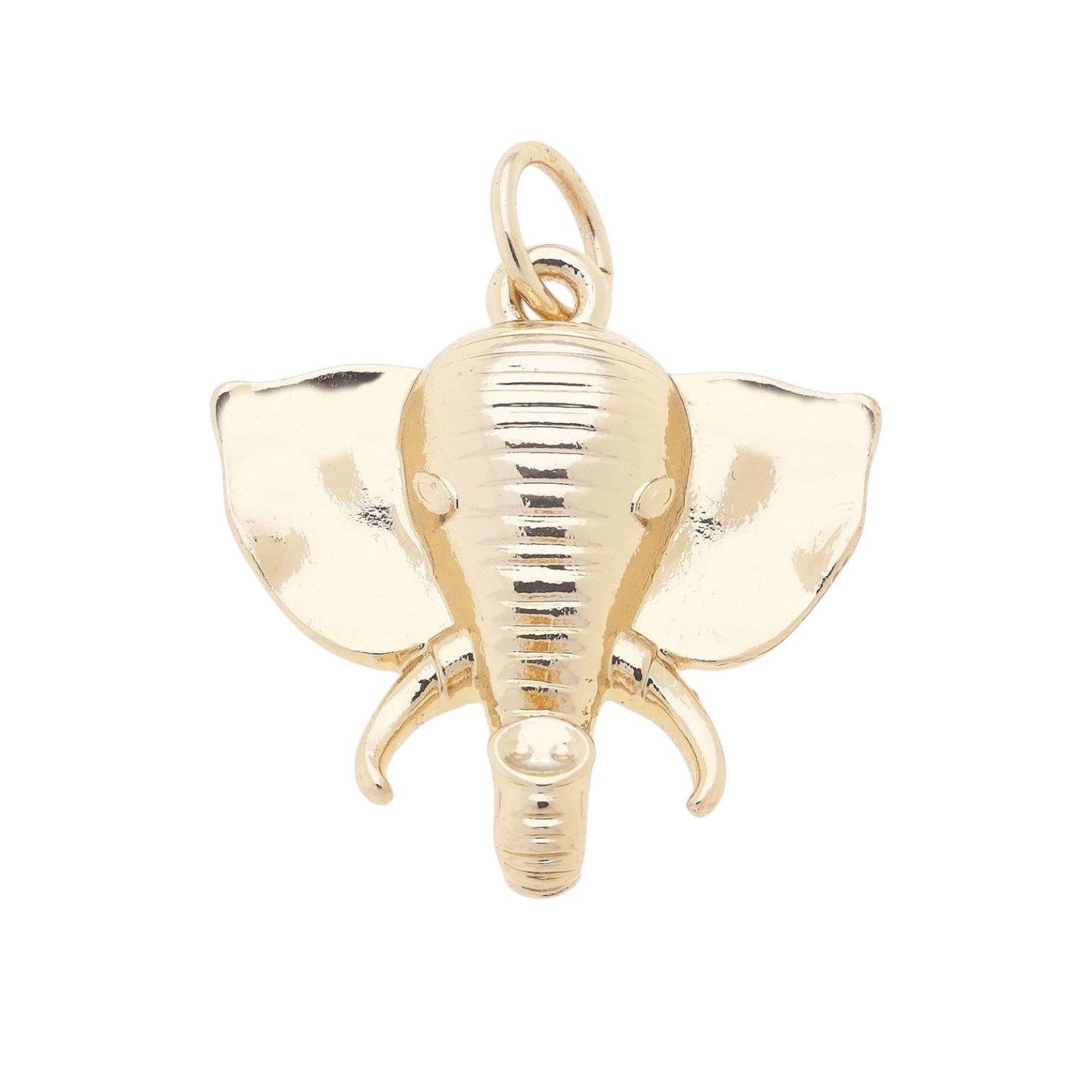 The Elephant Head Charm in Shiny Gold features a detailed elephant head design in polished gold. This charm symbolizes strength, wisdom, and good luck, making it a meaningful addition to your jewelry.