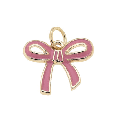 The Enamel Bow Charm in Light Pink features a cute bow design in soft pink enamel. This charm is perfect for adding a whimsical and feminine touch to your jewelry.