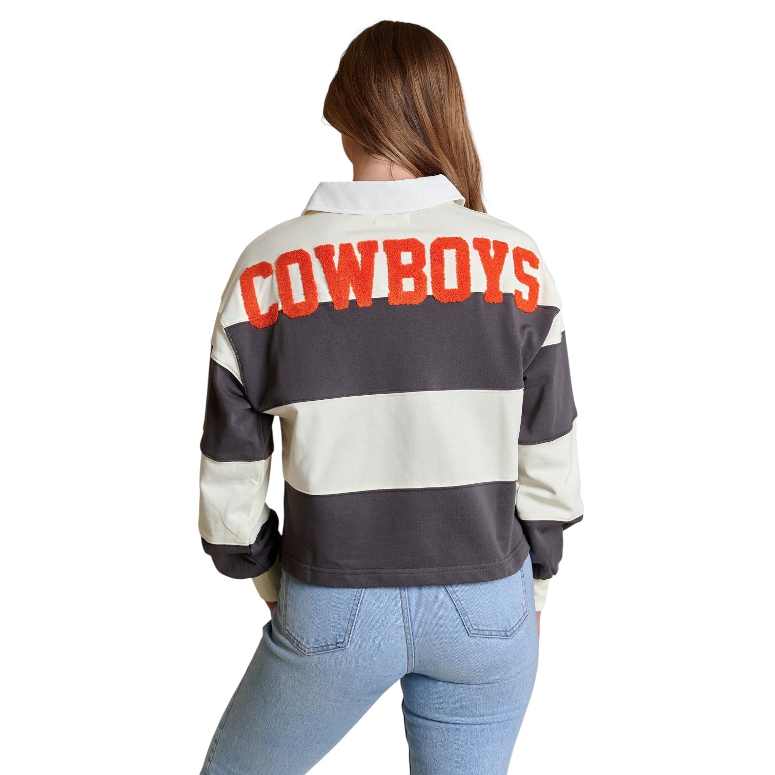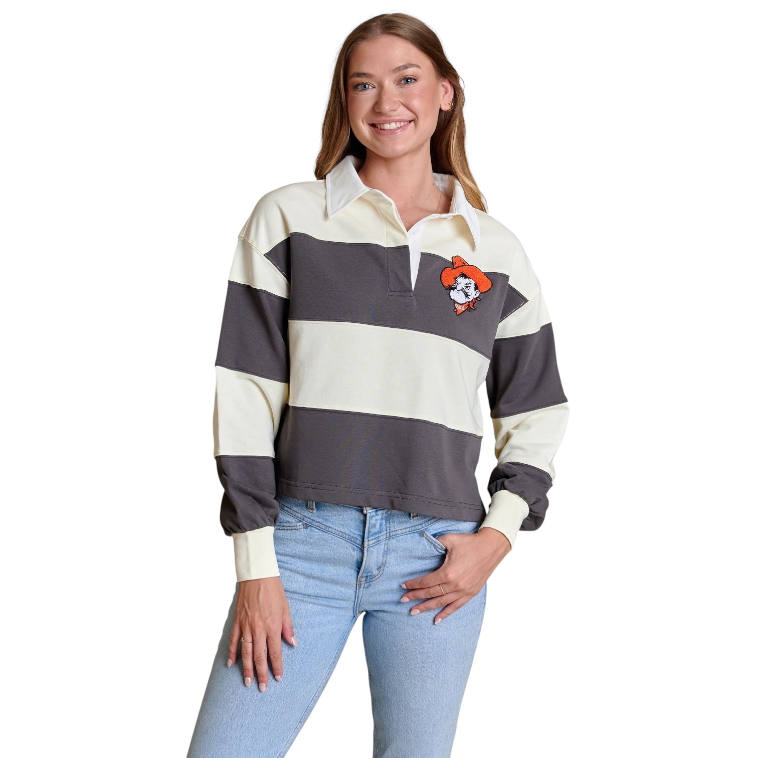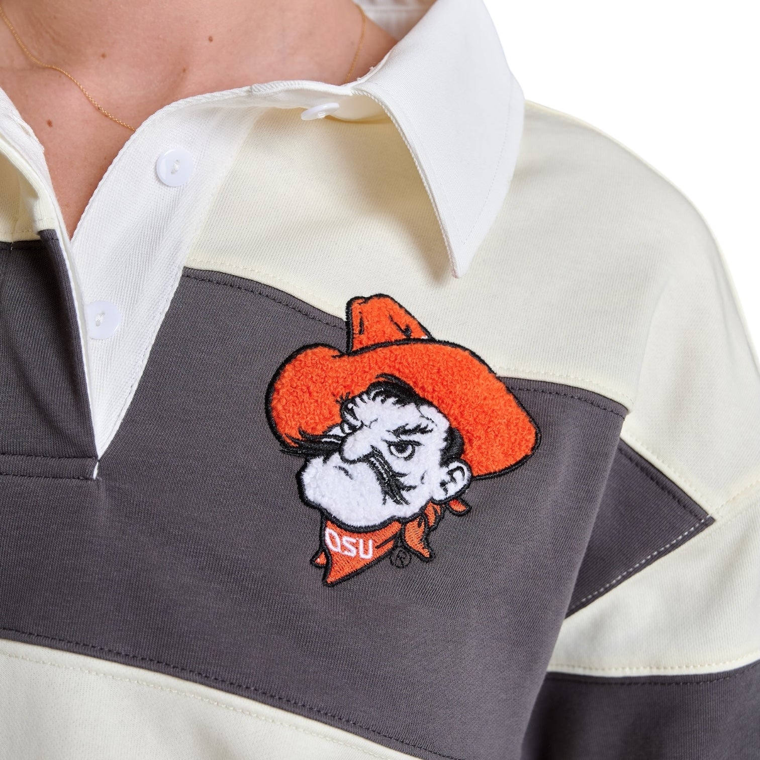 This long sleeve rugby top blends nostalgic charm with modern details. Designed in breathable French terry, it features a boxy, relaxed shape with dropped shoulders, a functional placket, and tonal chenille embroidery across the chest and back. We’re styling it with bermuda shorts or relaxed, baggy jeans and ballet flats for a sporty-meets-stylish look.