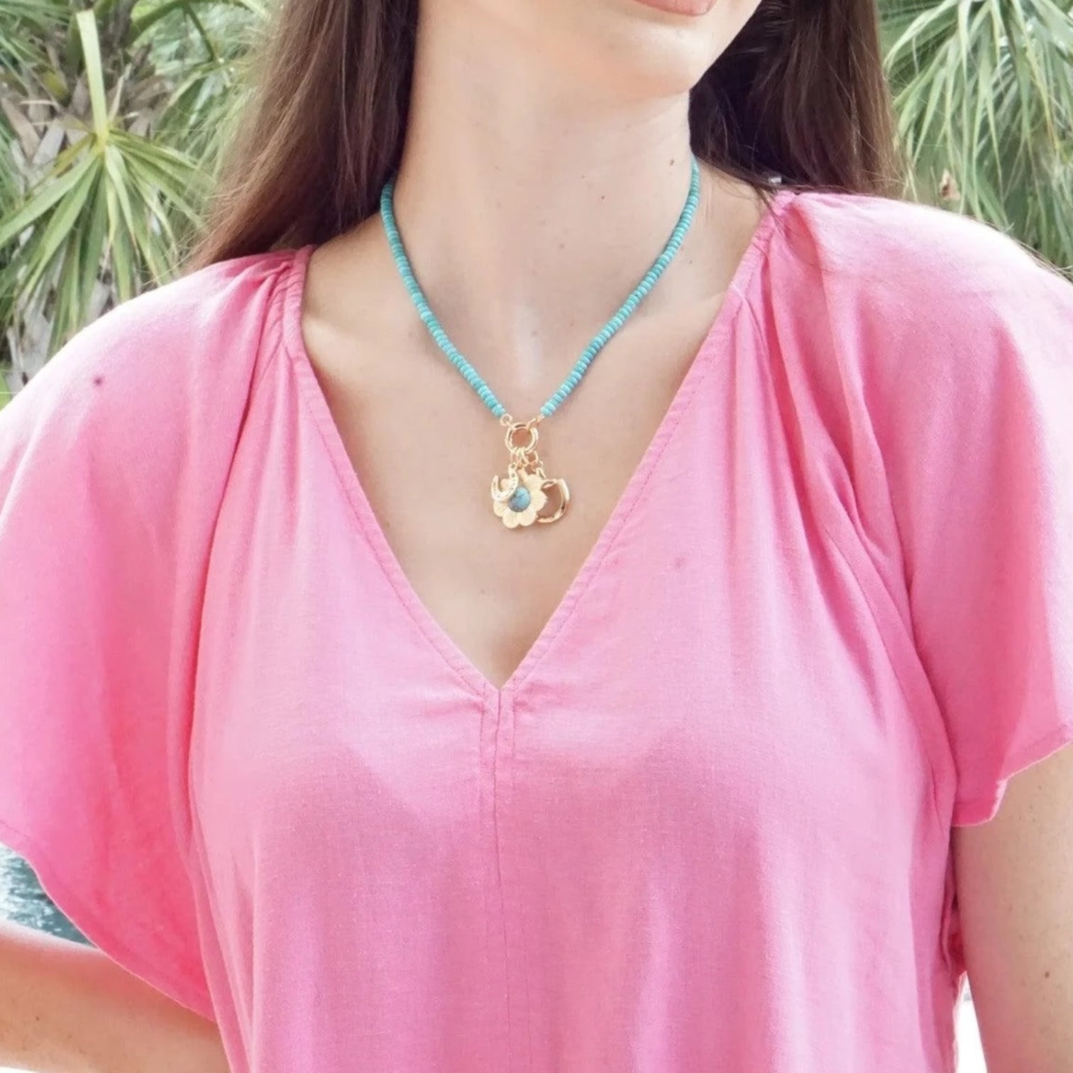 For a pop of vibrant turquoise, choose the Lucy Gemstone Beaded Charm Necklace Base. The rich blue stones offer a cool and refreshing backdrop, perfect for summer or those who love a bright, bold look. Easily add & remove charms to our necklace bases with our charm holders with hinge closures. Mix & Match charms to show off your unique style.