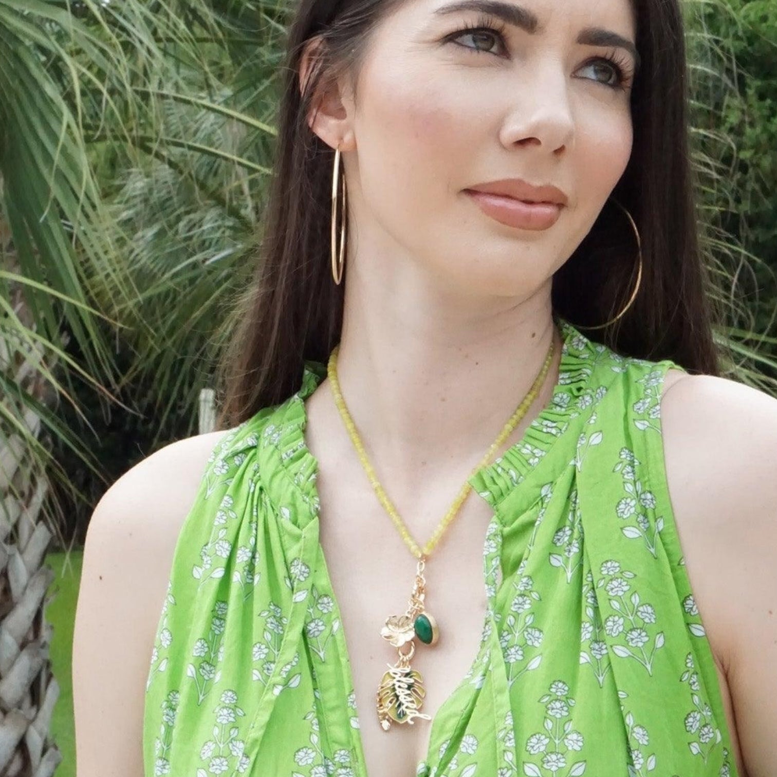 Home Lucy Lime Green Gemstone Beaded Charm Necklace