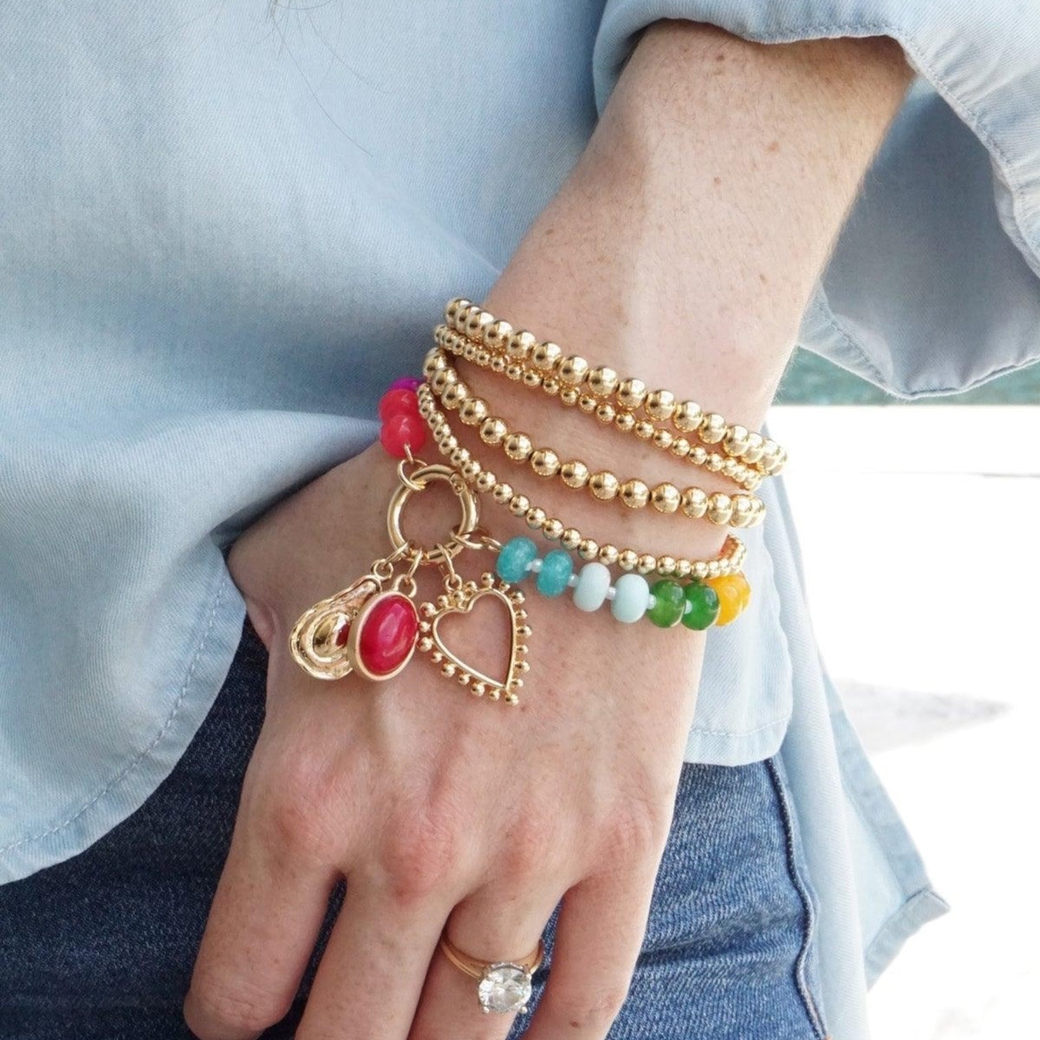 Home Lucy Rainbow Gemstone Beaded Charm Bracelet