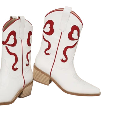 TRENDY RIBBON BOOTS DESIGN IN THE SHORT ANKLE BOOTIES VERSION BOW SHAPE CUT-OUT DESIGN ON THE SHAFT