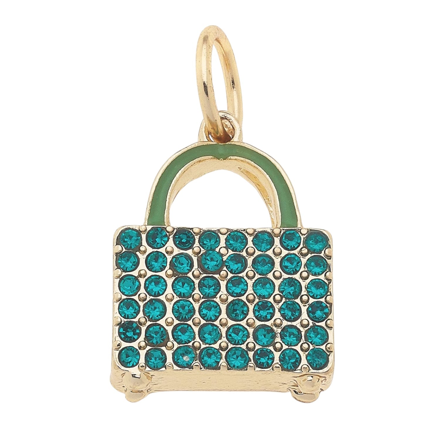 The Pave Carry On Charm in Green features a carry-on suitcase with sparkling pave accents in green. This chic, travel-inspired charm adds a touch of elegance to any jewelry piece.