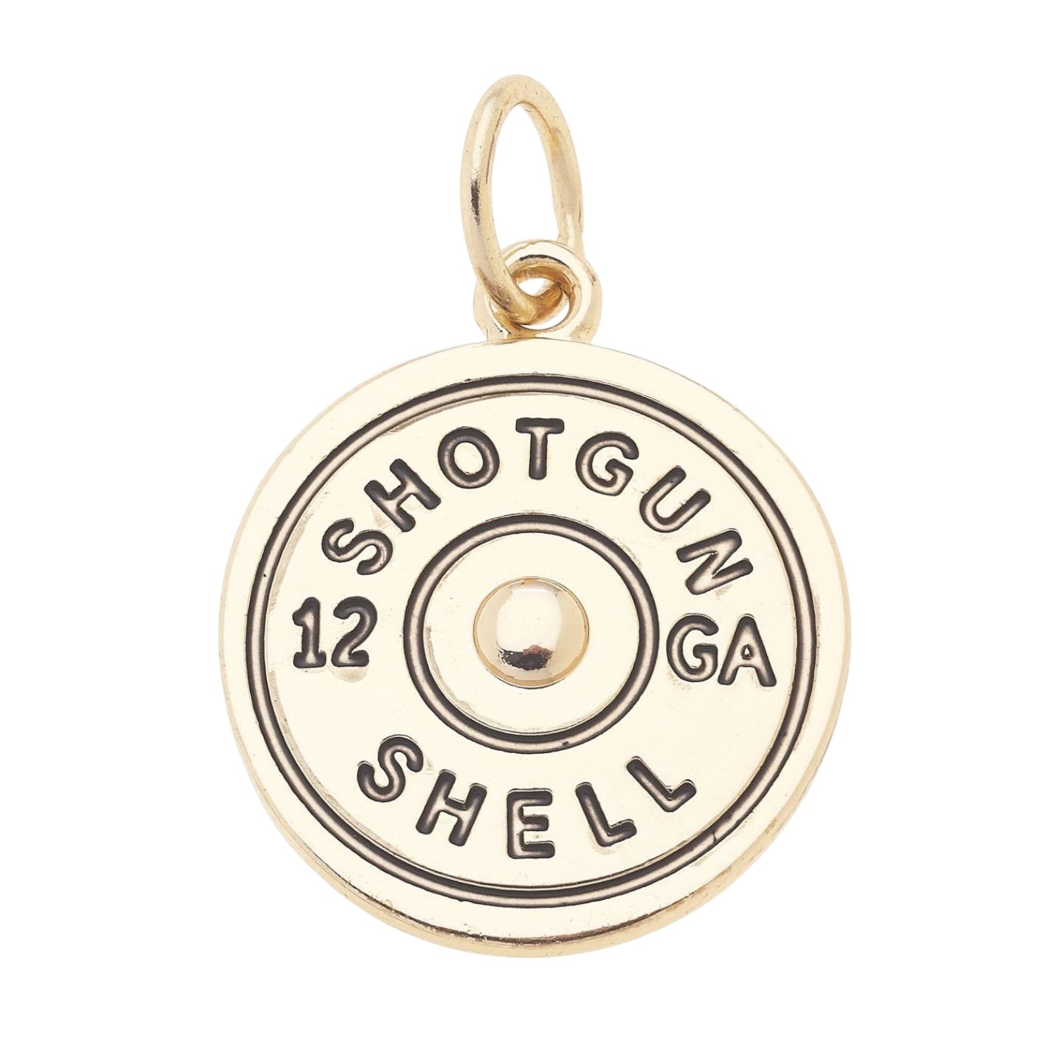 The Shotgun Shell Charm in Shiny Gold features a detailed shotgun shell design in polished gold. This unique charm is perfect for adding a rugged and adventurous touch to your collection.