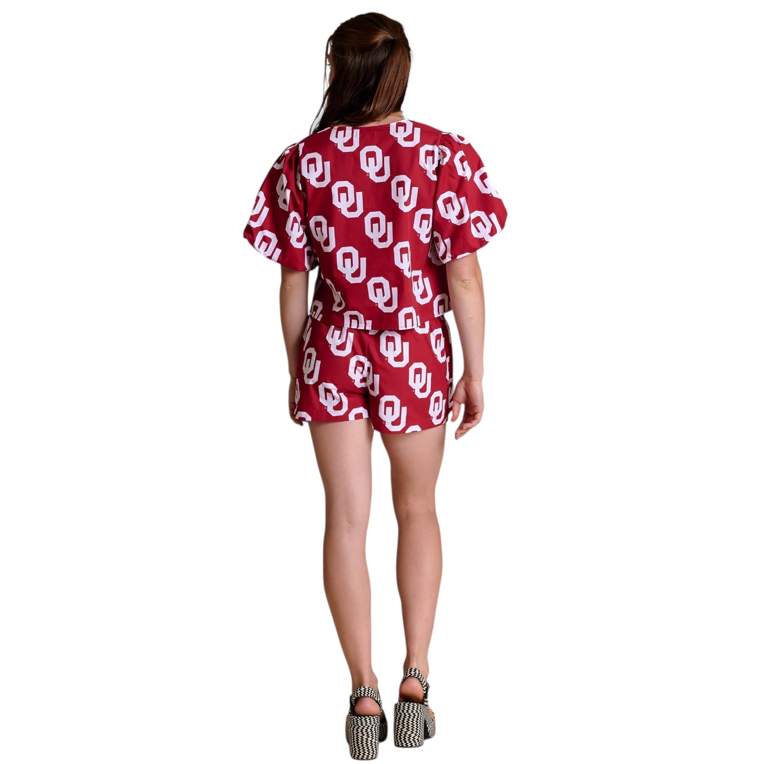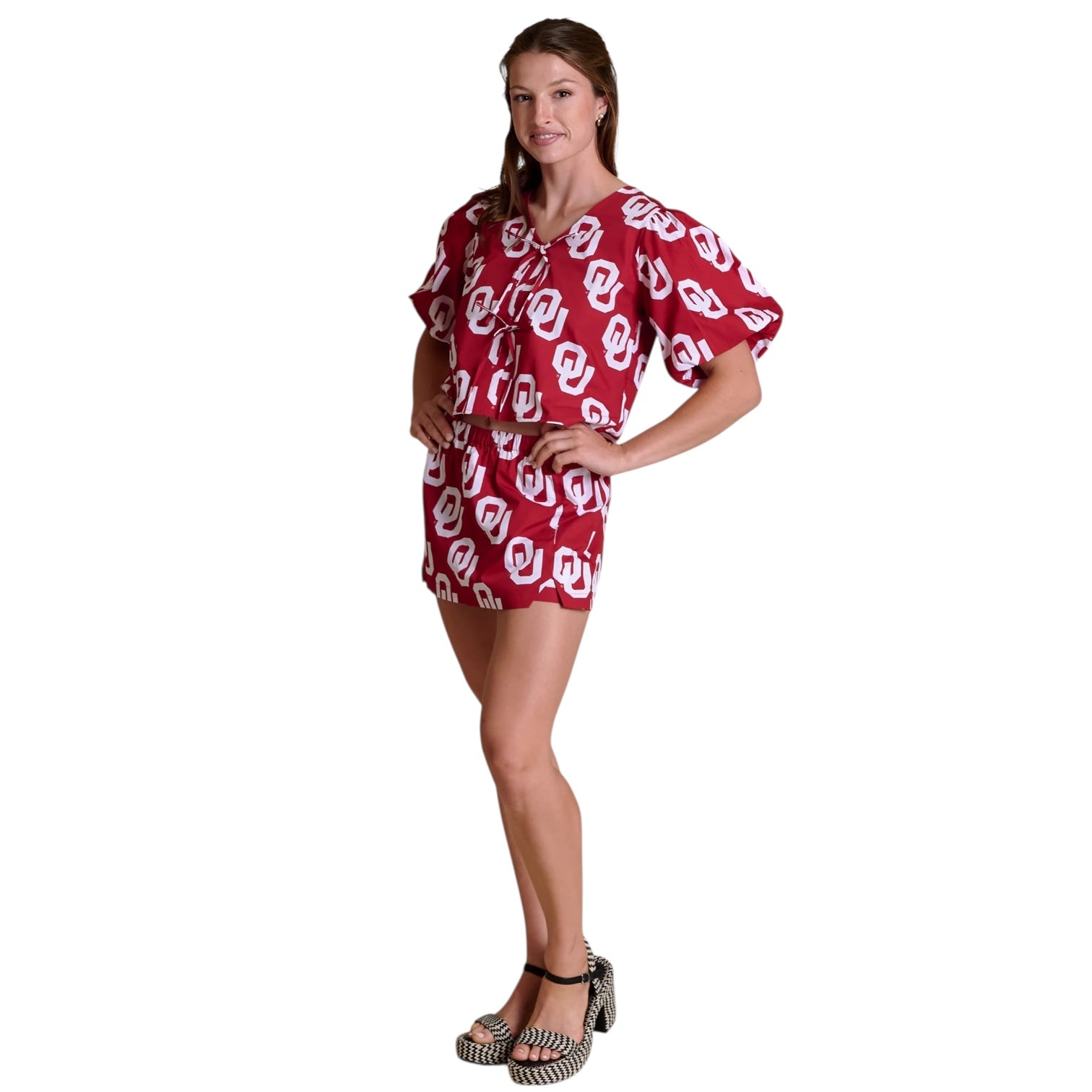 Sporty, chic, and made to move. This logo-printed skort is the perfect combination of playful and polished. Designed with clean front seams and angled hemline slits, it’s a flirty take on a classic bottom. We love it with our matching Poplin Tie Top and platform wedges for a full set moment.