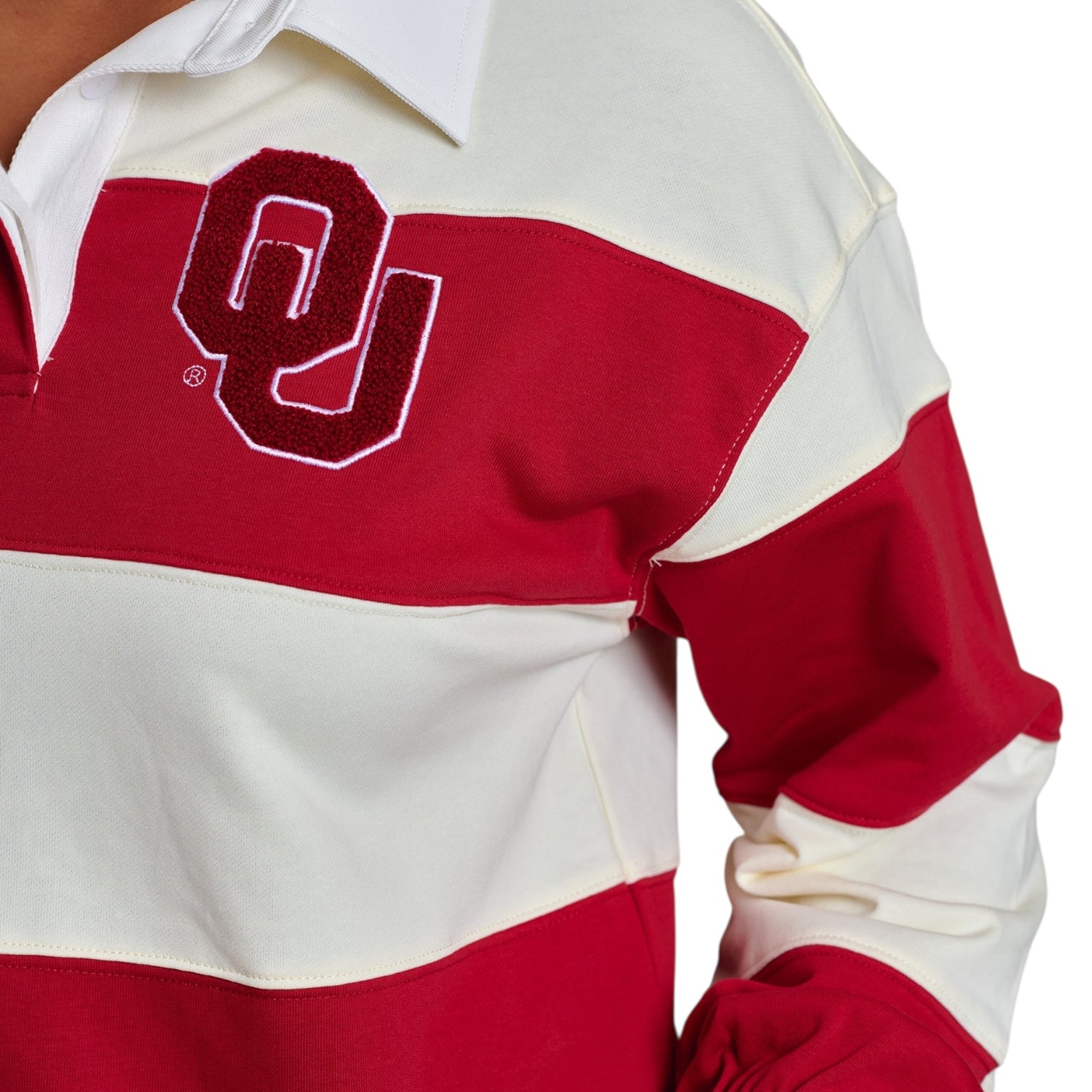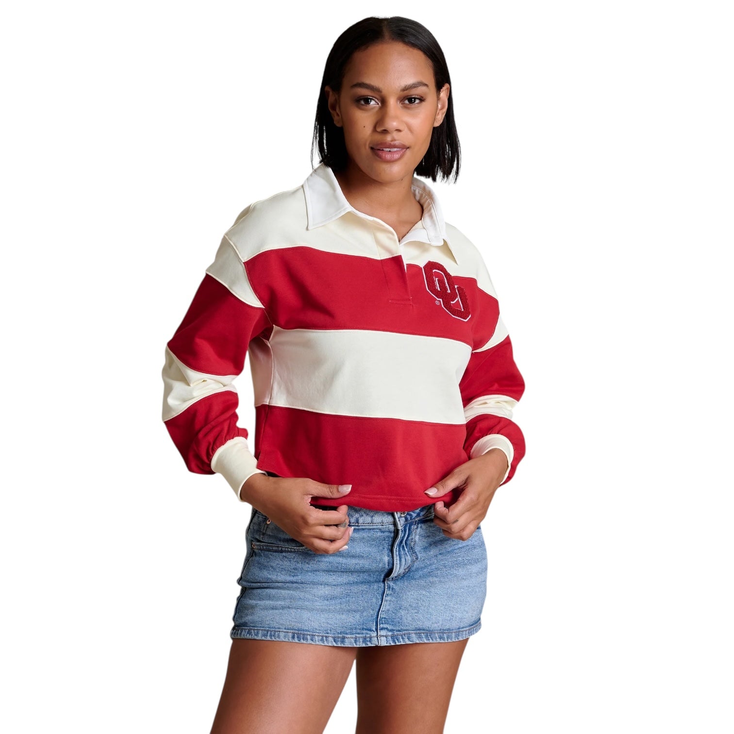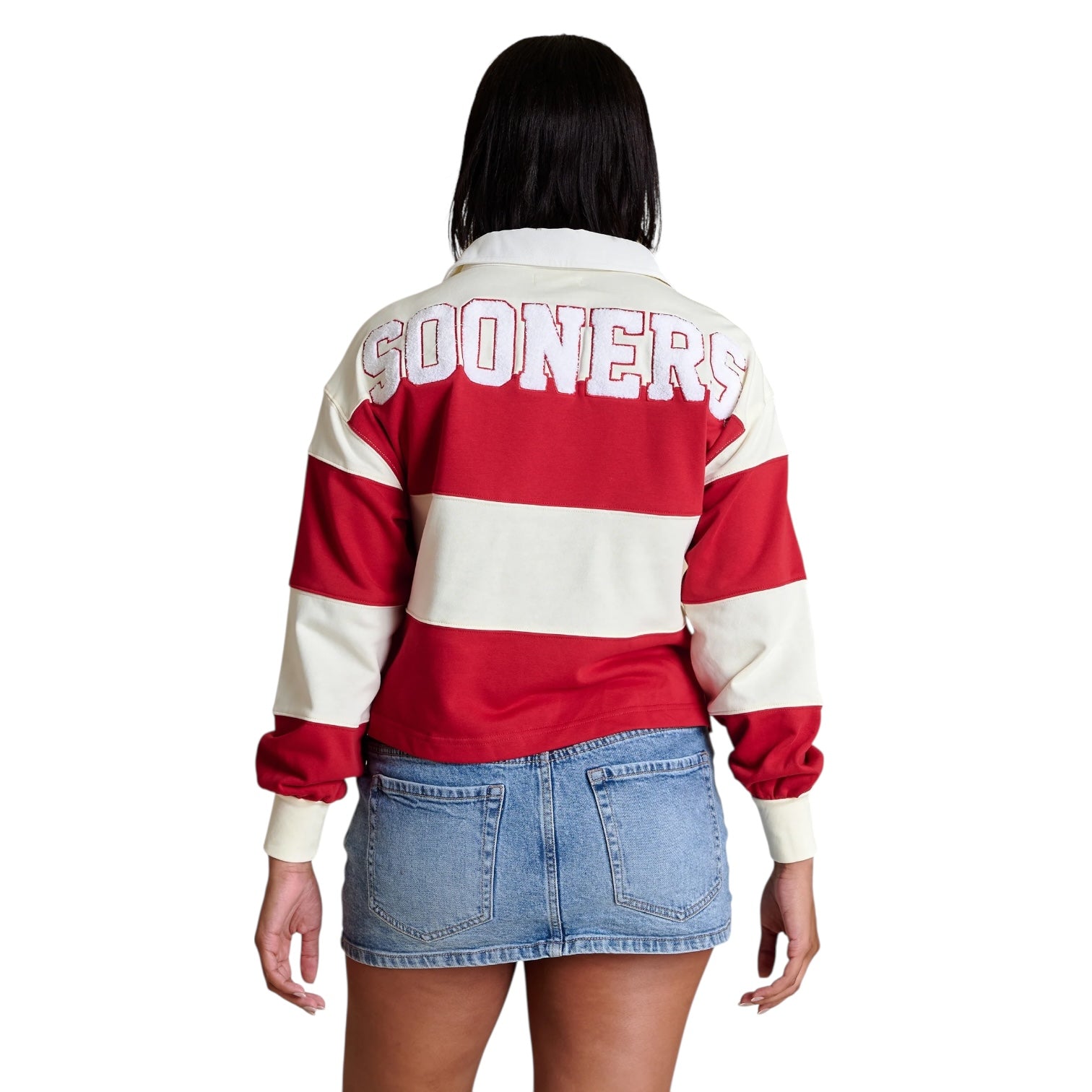 A classic rugby silhouette with elevated chenille embroidery. This long sleeve rugby top blends nostalgic charm with modern details. Designed in breathable French terry, it features a boxy, relaxed shape with dropped shoulders, a functional placket, and tonal chenille embroidery across the chest and back. We’re styling it with bermuda shorts or relaxed, baggy jeans and ballet flats for a sporty-meets-stylish look.